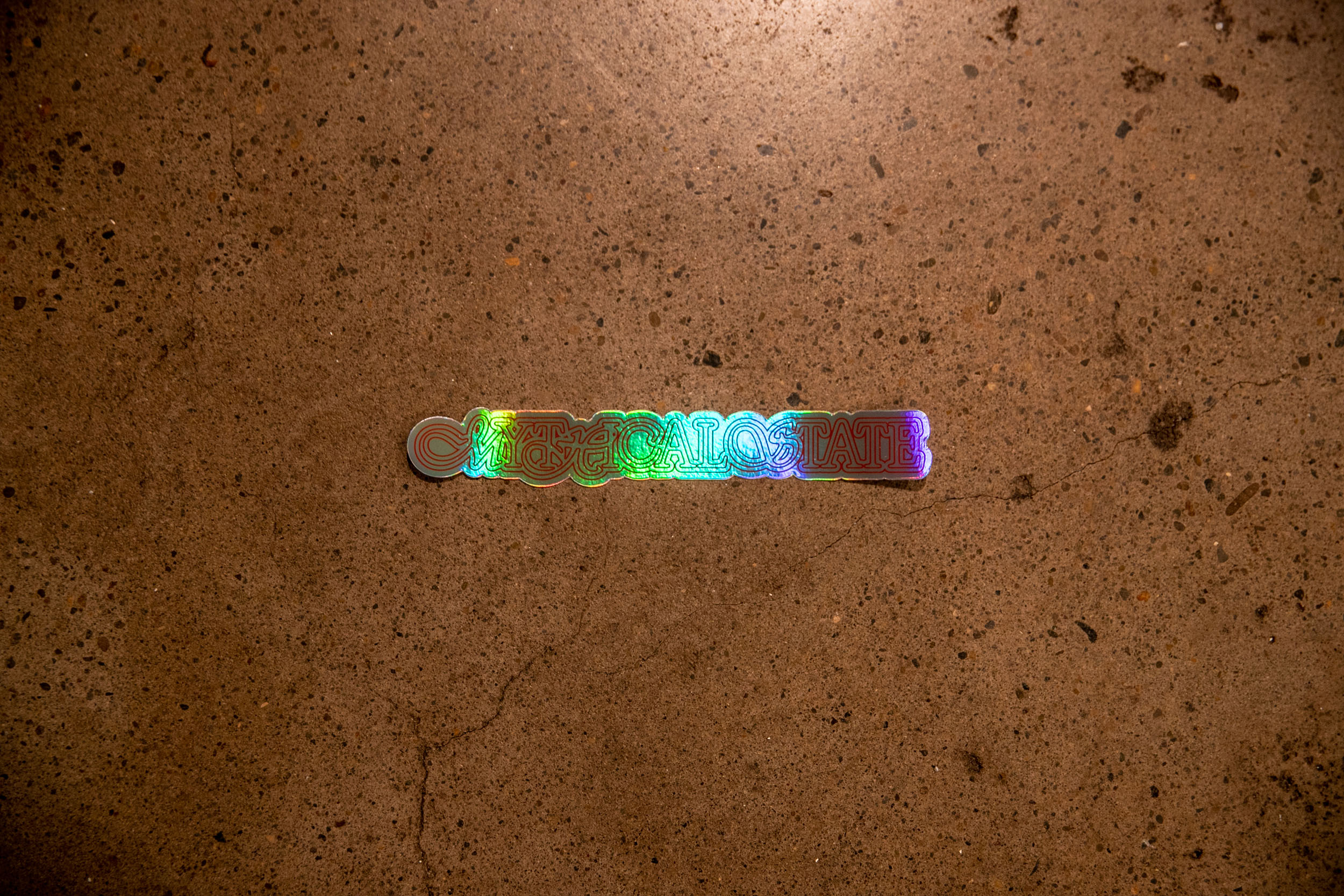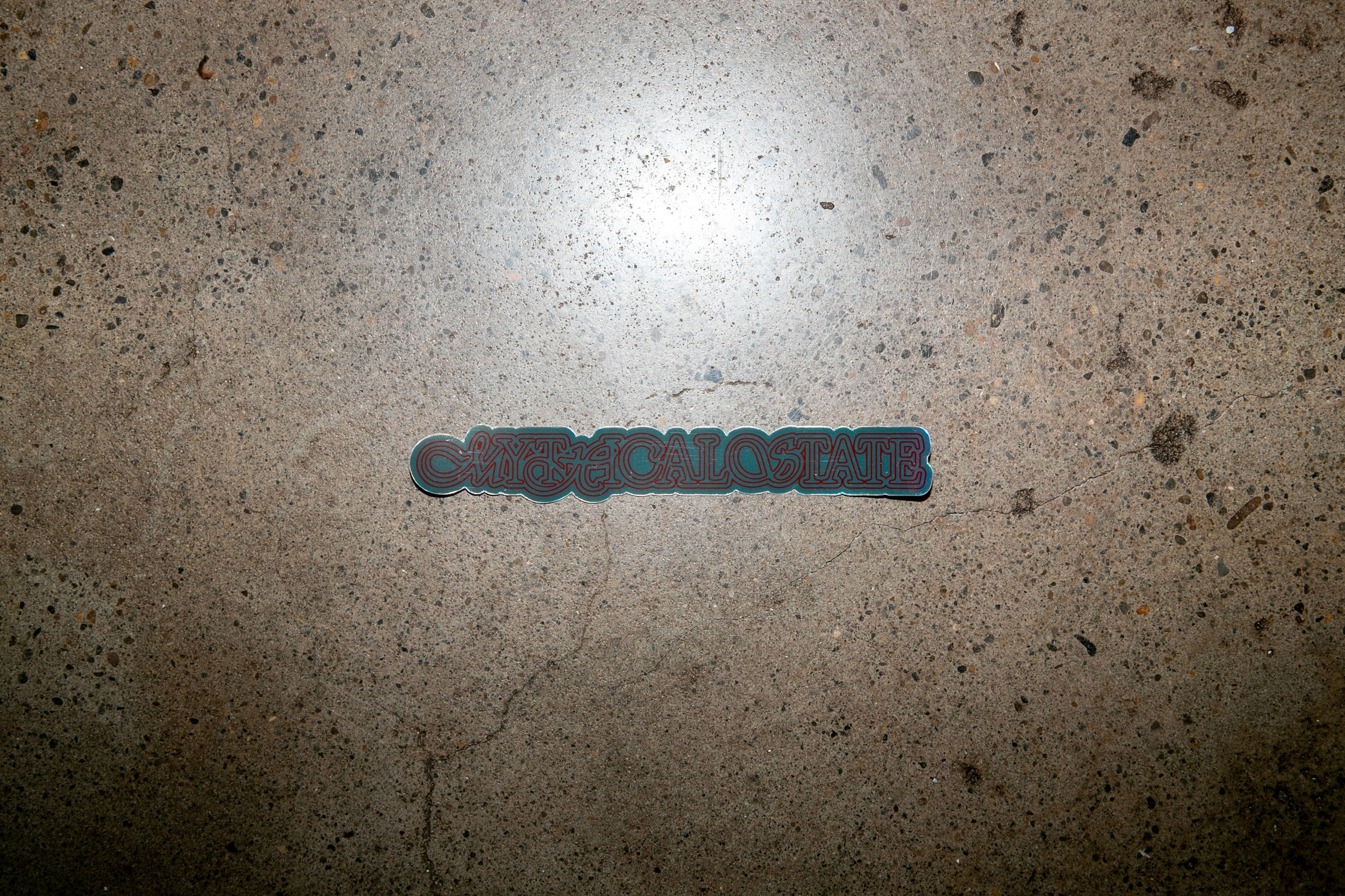 MYTHICAL STATE OF graphic printed on 6.58″ x 1″ durable holographic vinyl.