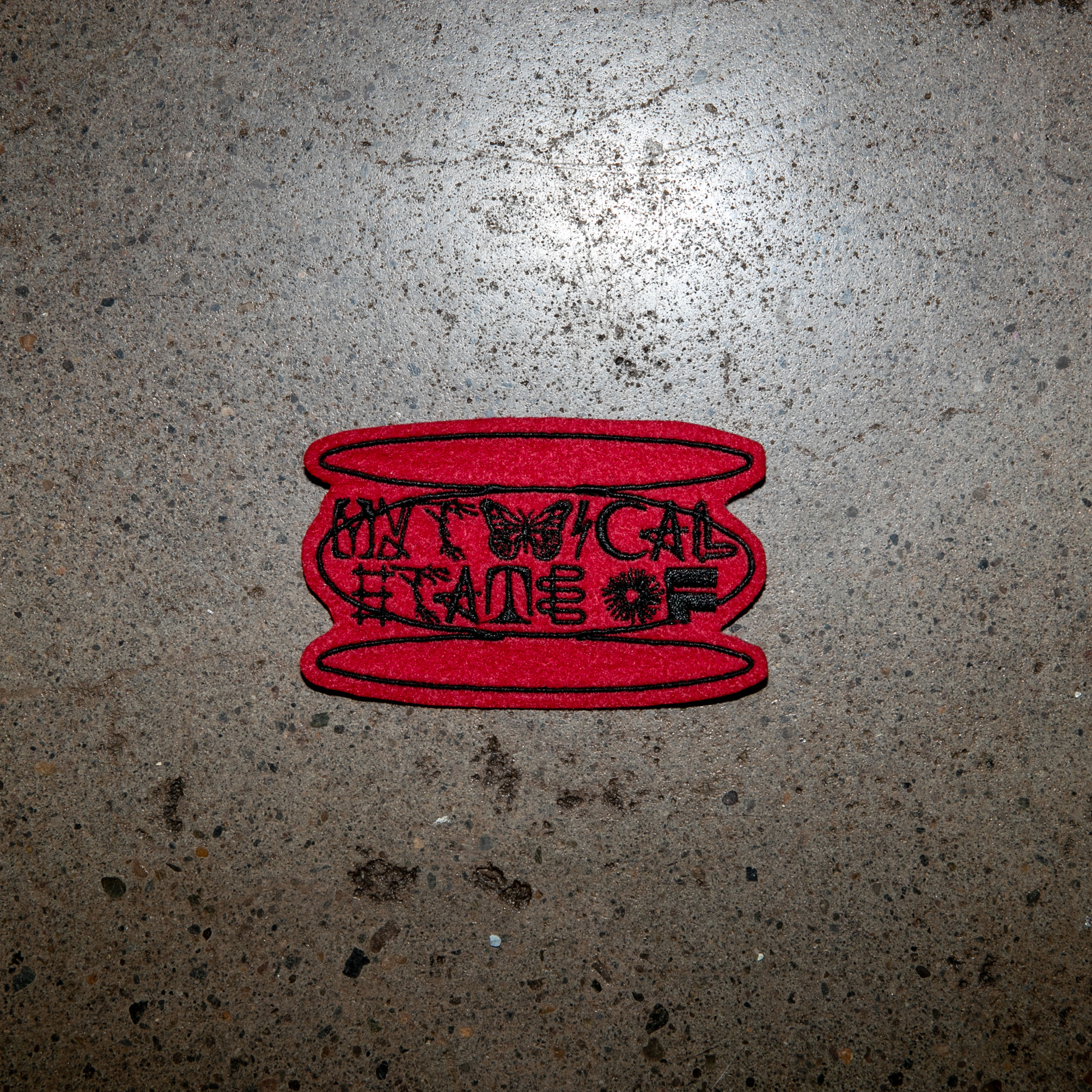 3.6″ X 2.25″ MYTHICAL STATE OF MSO ALPHABET EMBROIDERED FELT PATCH. RED FELT BACKING WITH BLACK EMBROIDERY.