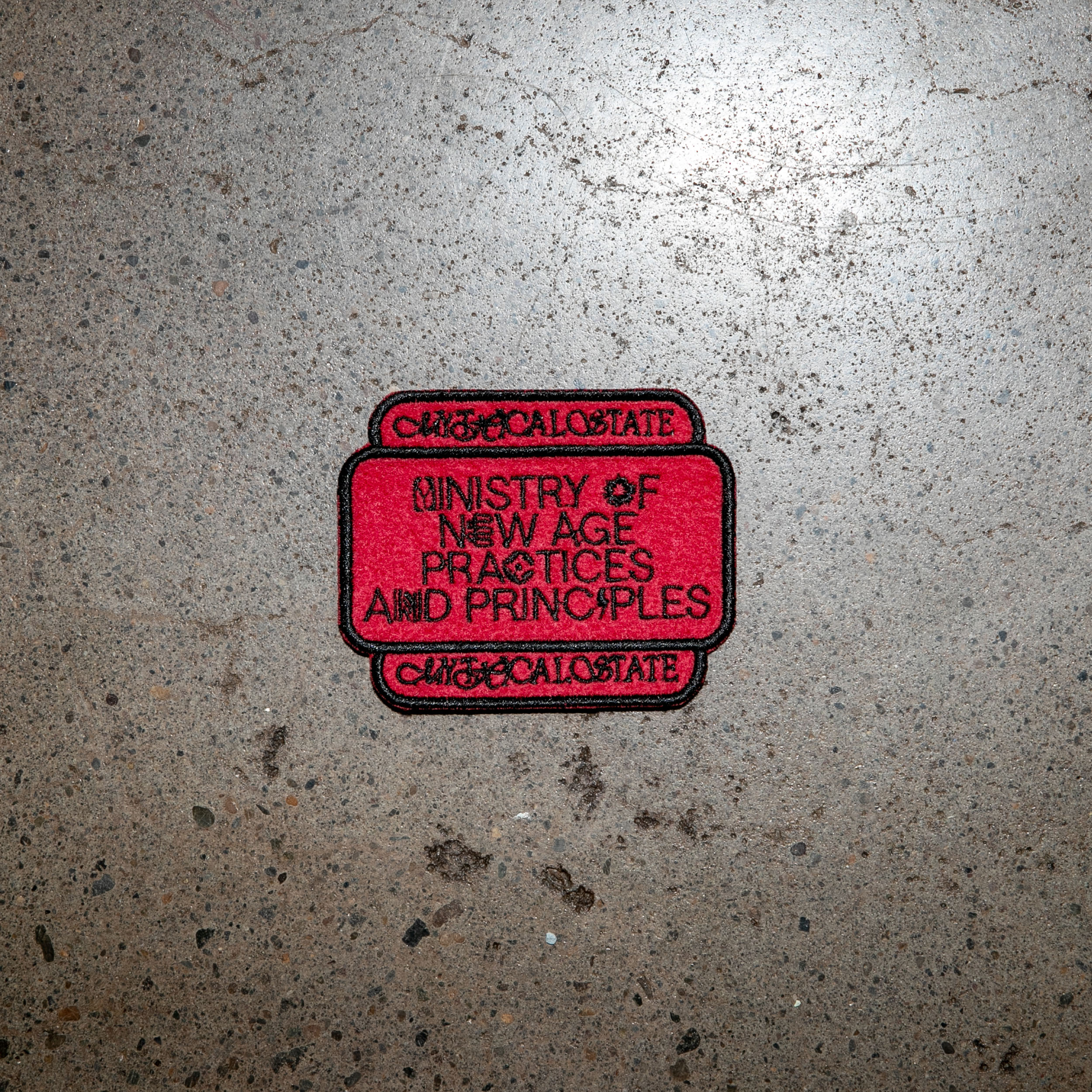 3.5″ x 2.75″ EMBROIDERED FELT PATCH. RED FELT BACKING WITH BLACK EMBROIDERY.